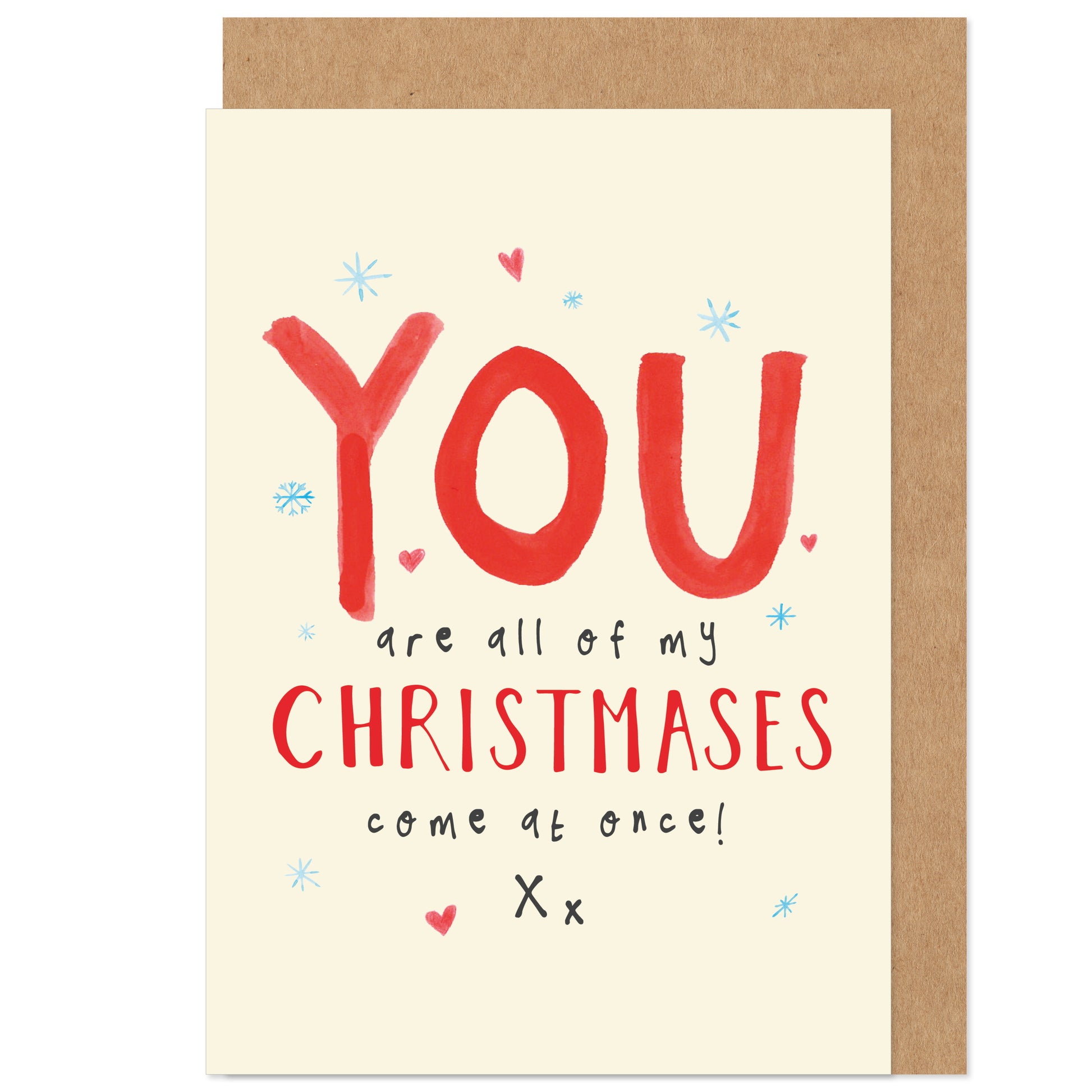 A sweet and simple hand drawn typographic card to let your sweetheart know they are all your Christmases come at once