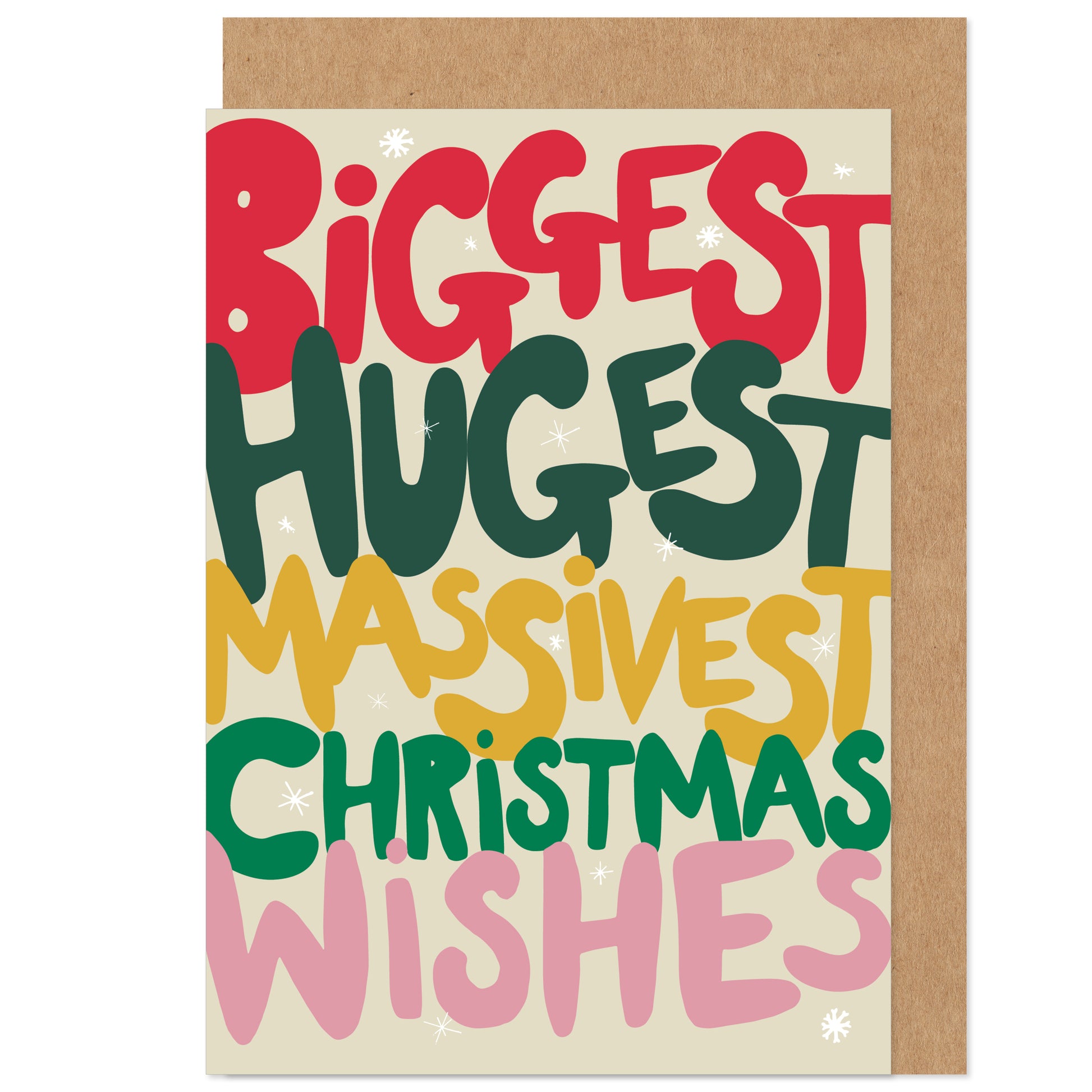 Biggest Hugest Christmas Wishes Bright Typography Card