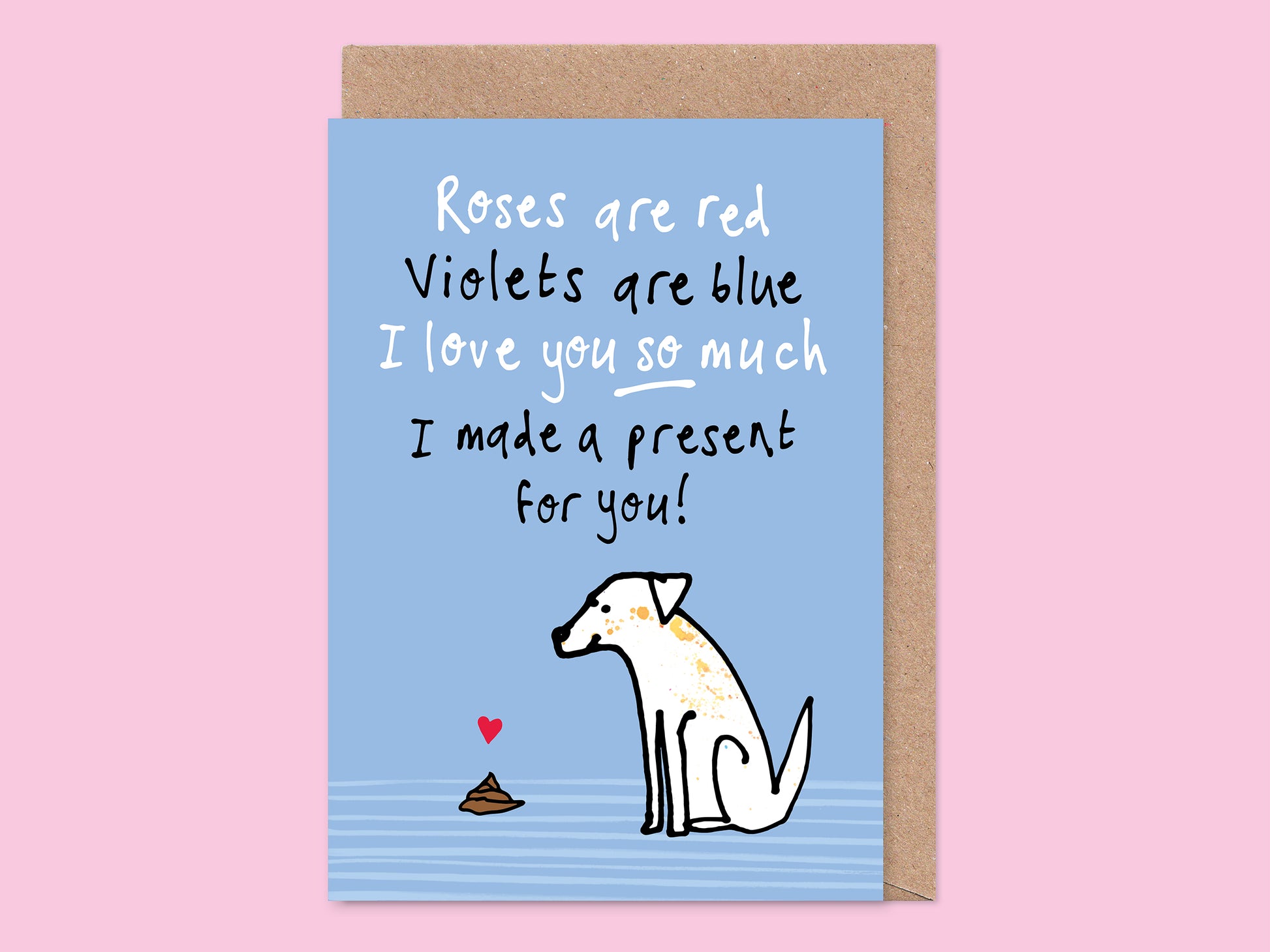 A sweet card from your perfect pup this Valentine's Day! Featuring a silly poem and a cute poop made with love!