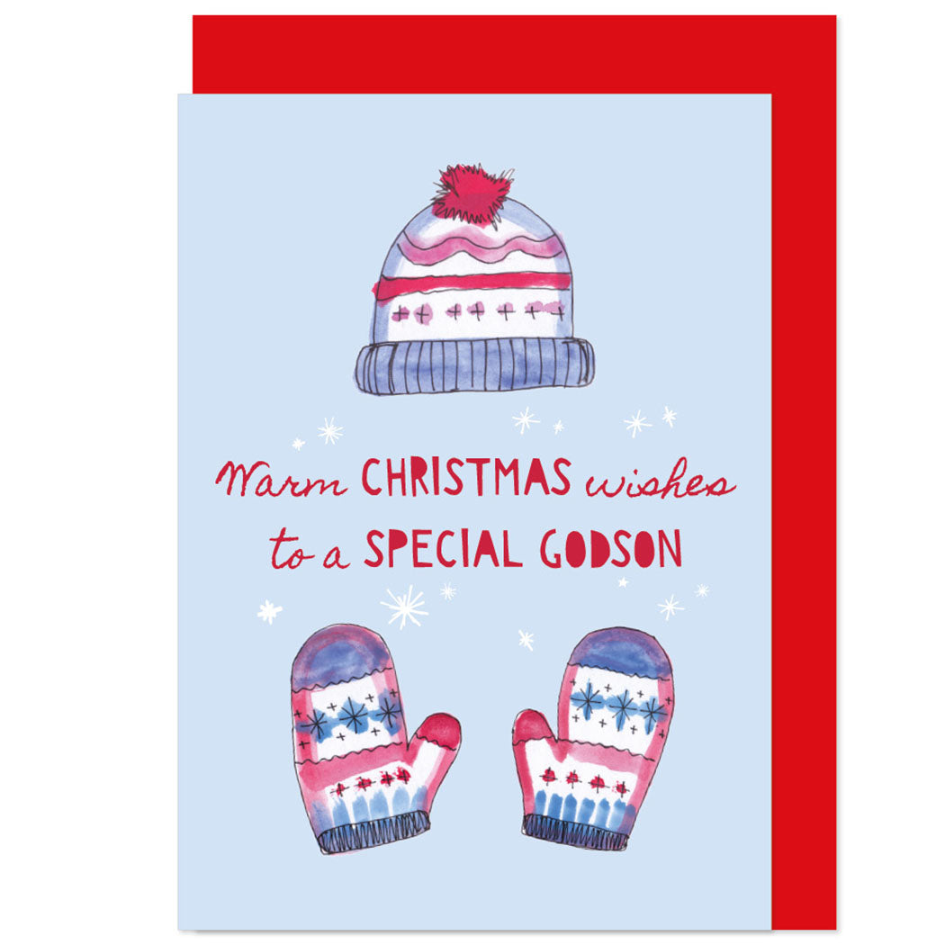 A sweet card to send warm Christmas wishes to a lovely godson.