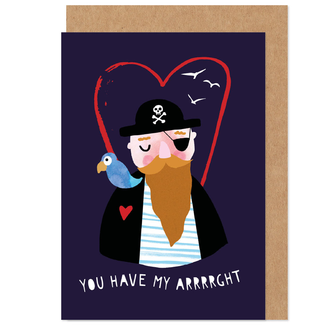A sweet and punny card of an old captain and parrot. Let your sweetie know they have your 'arrrrght!'